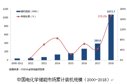 “2018全球储能产业迎来了跨越式发展。全球新增投运的电化学储能项目装机规模达3698.8MW,同比增长304.6%。其中中国新增投运电化学储能项目的装机规模为,682.9MW,同比增长464.4%,是除韩国之外增幅最大的国家。” 中关村储能产业技术联盟研究总监岳芬介绍,随着成本的持续走低及应用领域的铺开,预计未来5年,中国的电化学储能市场还将迎来大幅度的增长。