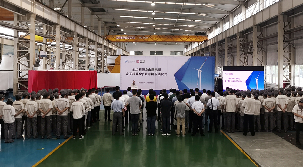 3.0MW(S)集中绕组模块化直驱永磁风力发电机由新疆金风科技股份有限公司(简称:金风科技)与中车永济电机有限公司(简称:永济电机)联合研制,代表了中低风速区风电发展的最高技术水平,标志着我国模块化直驱永磁风力发电机设计制造技术达到世界先进水平。
