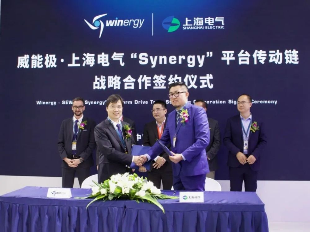 10月14日,上海电气风电集团与全球领先的风电传动设备供应商威能极签署传动链战略合作协议,携手助力海上风电“后补贴时代”。上海电气风电集团总裁缪骏、上海电气风电集团首席数字官兼技术总经理康鹏举,威能极中国齿轮箱总经理Joerg Sieber、威能极中国发电机总经理Andreas Josef Nagel共同见证,上海电气风电集团海上产品线总监黄轩、威能极中国齿轮箱销售总监卢永要代表双方签约。