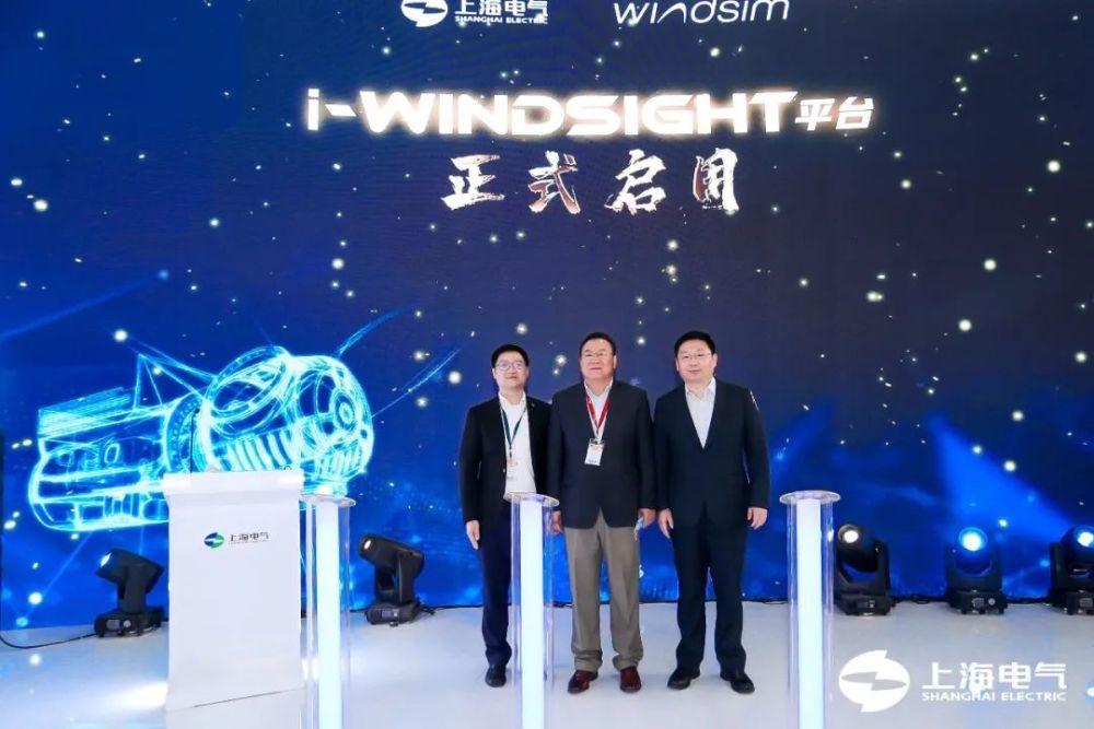 10月14日,上海电气在展位举行了i-WINDSIGHT平台联合发布仪式。WindSim中国区总经理吴轩、上海电气风电集团首席数字官兼技术总经理康鹏举、技术部系统中心主任兼广东分公司总工程师彭明出席本次仪式。