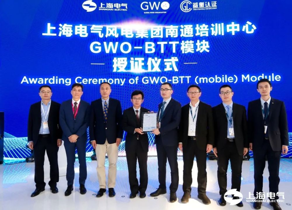 10月14日,上海电气在风能展期间举行了南通培训中心GWO-BTT模块授证仪式,获得此项认证是上海电气风能技术培训业务面向国际化的一个重要里程碑,这代表着上海电气将持续引领风电行业安全和技术的标准化发展。