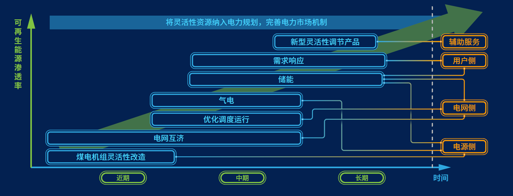 ●完善电力市场机制,通过市场手段激励更多灵活性资源发展