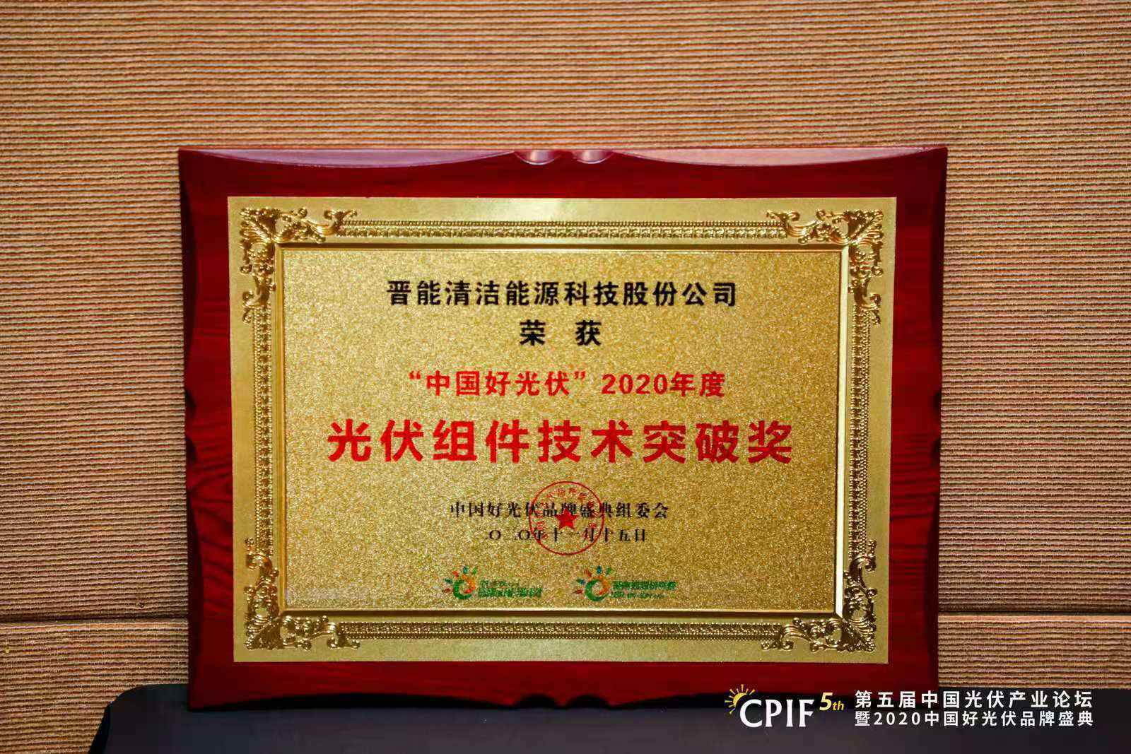 活动现场,作为光伏行业最具影响力的品牌奖项之一,中国好光伏品牌大奖隆重揭晓。光伏制造的领跑者晋能科技凭借在组件技术研发领域取得的显著成果,荣获中国好光伏“2020年度光伏组件技术突破奖”。这也是继晋能科技荣获“2019中国好光伏电池/组件技术突破奖”后,公司技术研发实力再次得到认可。