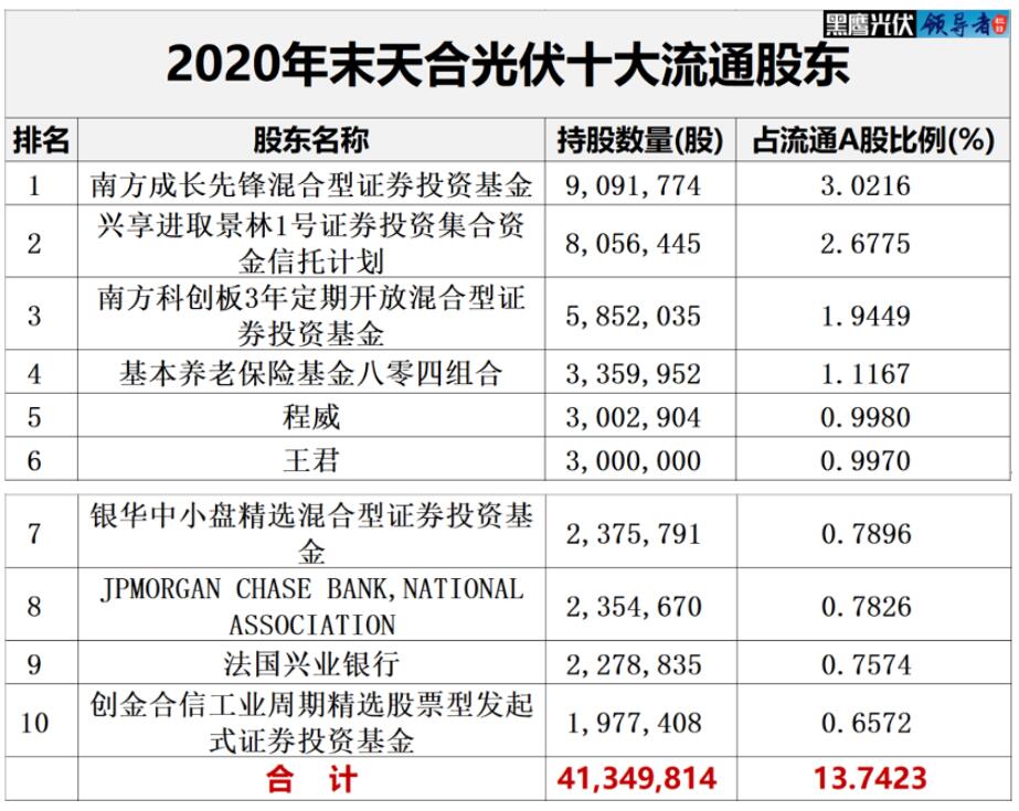 在天合光能前十大流通股东中还出现了多家顶级投资机构的身影,比如法国兴业银行、JPMORGANCHASEBANK、基本养老保险基金以及多家基金等等,前十大流通股东合计持股4135万股,占流通股比例为13.74%。