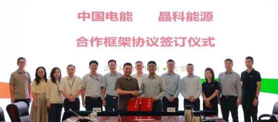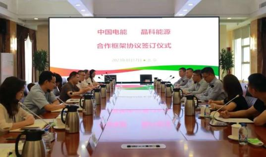 近日,晶科能源股份有限公司(以下简称“晶科能源”)与中国电能成套设备有限公司(以下简称”中国电能”)在京签署战略合作框架协议,中国电能党委委员、副总经理章宏雷,晶科能源副总裁姚峰等领导出席签订仪式。