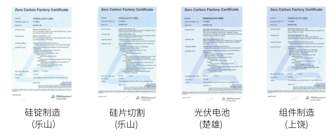 晶科能源也是业内首家获得TÜV Rheinland颁发的"零碳工厂"认证的企业,认证范围包括硅锭制造、硅片切割、光伏电池和光伏组件制造。这一里程碑标志着公司向着可持续发展、创新和社会责任的目标又迈出了重要一步。