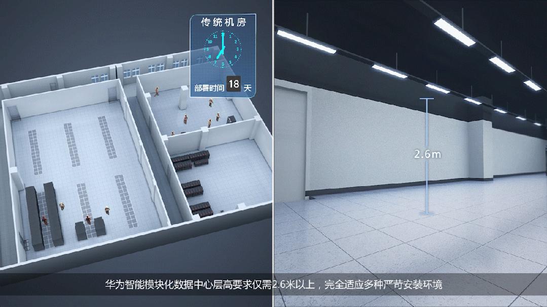 相较于传统的数据中心,华为智能微模块的场景适应性更强,不受限于安装环境,同时对层高要求较低。同时,通过工厂预制化设计,微模块内直接集成了一体化UPS、温控、监控等关键部件,大幅缩短建设周期,匹配Matrix NAP Info的快速部署的建设需求。