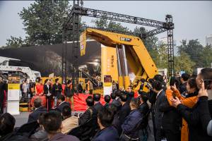 此次展会上,卡特彼勒展台面积达到空前的1600平米,展示了全球采矿业最全面的产品线,以及一站式露天及井工采矿解决方案,包括世界上功率最大的刨煤机系统——Cat GH1600、适用于世界上最大采高工作面的中部槽——Cat PF7、尖端智能的Cat PMC™-R液压支架电液控等井工设备,以及有效载荷100吨的Cat 777D型矿用卡车、负载能力20吨的电驱动Cat 6018型矿用液压挖掘机等露天设备。由于体积庞大、难以运输、安装耗时,大型露天开采设备以往从未亮相国际煤机展,此次卡特彼勒展台上的两个庞然大物令参观者眼前一亮,纷纷驻足参观、拍照留念,成为本届国际煤机展上最大的亮点,开创了大型露天设备真机参加该展会的先河。