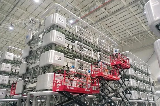 ▲国网冀北电力员工在张北柔性直流电网工程中都换流站开展年度检修