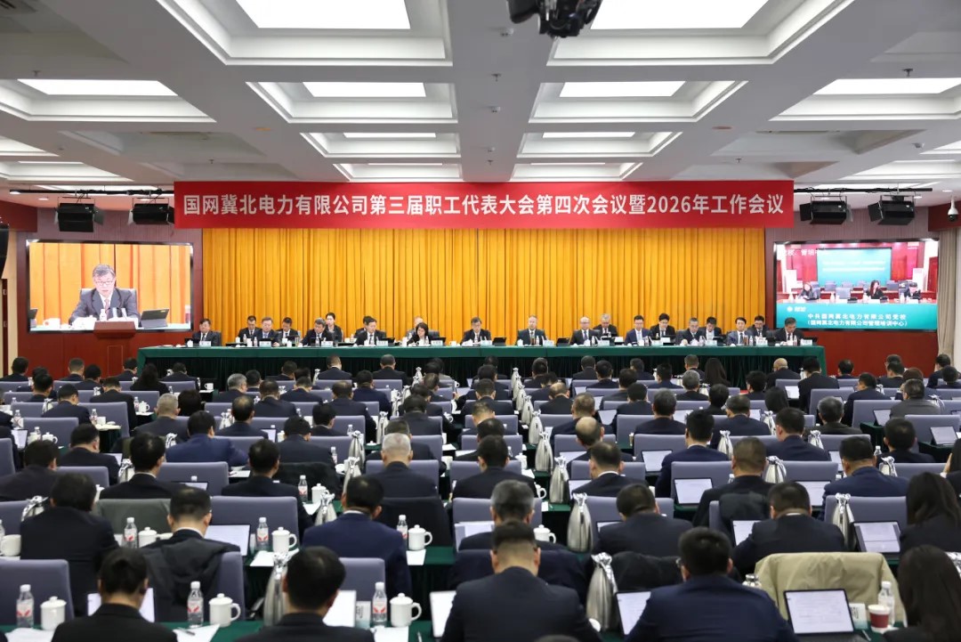 1月19日至20日,国网冀北电力第三届职工代表大会第四次会议暨2026年工作会议召开。会议传达了习近平总书记对中央企业工作的重要指示批示精神、中央经济工作会议精神及国家电网有限公司第五届职工代表大会第一次会议暨2026年工作会议精神。公司董事长、党委书记张玮作题为《锚定“两个标杆” 持续发力攻坚 为中国式现代化建设作出更大贡献》的讲话。公司外部董事召集人杜蜀薇出席会议。公司总经理、党委副书记安彦斌作公司工作报告。公司党委副书记周艾辉主持会议。公司领导徐其春、李旸、曹伟、黄磊、徐驰、李阿勇,三级顾问肖忠文,唐山公司总经理梁吉、党委书记陈建军,公司退休领导王晓希出席会议。