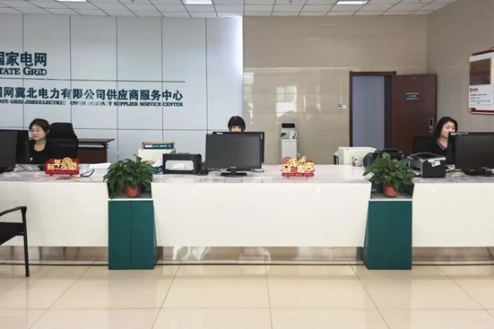 ▲物资合同专责在冀北供应商服务大厅紧锣密鼓开展合同签订工作(张艳摄)