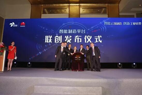 潘爱华副司长、王绪君主任、李德芳主任、齐学忠总裁、刘超副总裁、姚茳部长共同宣布智能制造云平台联创发布会取得成功