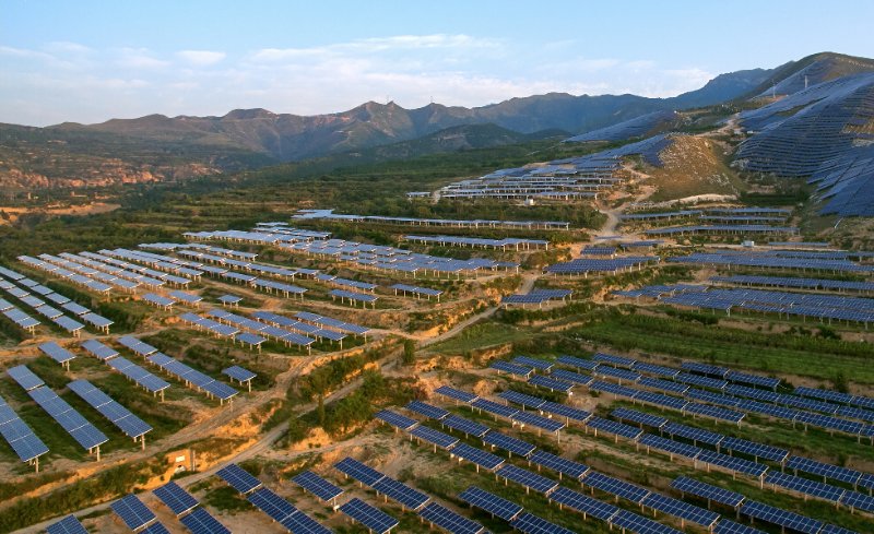 2015年,国家能源局推出光伏“领跑者计划”,通过建设先进技术光伏发电示范基地、新技术应用示范工程等方式,引导光伏技术进步和产业升级。山西芮城光伏领跑者基地是2016年6月国家能源局批复的全国八大光伏基地之一,也是全国唯一的县级基地,一期规划建设装机规模50万千瓦,二期规划建设装机规模52万千瓦。地处晋、秦、豫三省交界处的芮城县,是山西的“南大门”。作为兵家必争之地而名声在外的中条山耸立在芮城县域的北缘,全县地势北高南低,单面阳坡呈阶梯状分布,拥有丰富的太阳能资源和沿山连片的未开发荒坡。