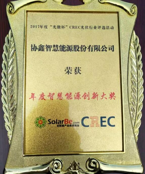 2017年11月1日,第九届中国(无锡)国际新能源大会暨展览会在无锡开幕。在当晚举行的“光能杯”CREC年度颁奖典礼中,协鑫智慧能源凭借其在“互联网+”智慧能源领域内的突出贡献,获得了“年度智慧能源创新大奖”。
