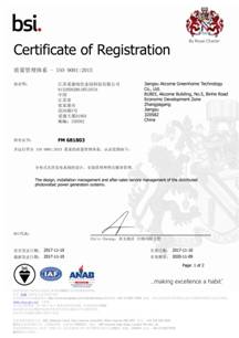 2017年11月16日,江苏爱康绿色家园科技有限公司(以下简称“爱康绿色家园”)收到一份来自国际权威认证机构(BSI)英国标准协会颁发的ISO9001:2015质量管理体系证书,标志着爱康绿色家园在规范化运营和质量管理体系方面迈上新台阶。据了解,爱康绿色家园是我国分布式光伏系统领域内首家通过ISO9001认证的企业。