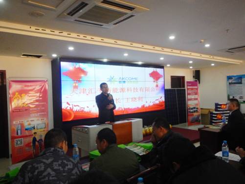 看到现场气氛热烈,汇千新能源王总也开门见山地为大家宣布了本次感恩促销活动的优惠政策。为了回馈新老客户,表彰他们这份难能可贵的孝心,本次大会订货不但有产品价格优惠而且只要在会上成功签单的客户均可获得加赠的洗衣机一台,其中杨大爷、刘大伯、苏大哥在本次会议上运气爆棚,抽得了电冰箱、电视机、电暖气的感恩回馈大奖。