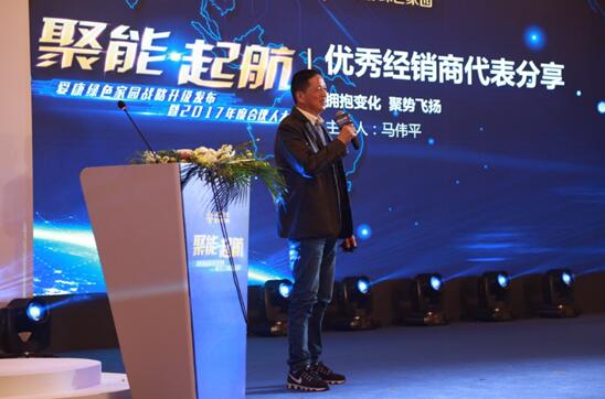 会议伊始,江苏爱康实业集团副总裁黄国云先生上台致辞,他表示2017年是户用分布式光伏飞速发展的一年,爱康绿色家园从行业新生代成长为业内唯一的“隐形冠军”,这源于对品质和服务的坚守,爱康绿色家园不仅让五好家电站走进千家万户,也在积极引导建立行业标准,规范行业秩序,造福亿万家庭,希望爱康绿色家园持续秉承用良心做产品,以真心做服务的企业情怀,也期待战略升级后的爱康绿色家园可以势如破竹,用更短的时间让所有人共享清洁能源,赢享阳光财富。