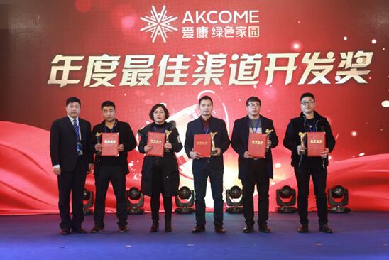 古语云:“千人同心,则得千人之力”,一段各省办精英团队及经销商团队的集体展示视频,让所有人感受到爱康绿色家园“千人同心同德”的团队精神,其后呈现的销售团队风采展示更是将现场气氛推向高潮,气魄凛然的誓言、激扬奋发的斗志,揭开大会第二幕——“鼓励”。为鼓舞士气、提振信心,爱康绿色家园对2017年度表现突出的21位优秀经销商分别授予年度最佳活动推广奖、年度最佳渠道开发奖、年度最佳服务口碑奖、年度销量贡献奖以年度特别贡献奖。