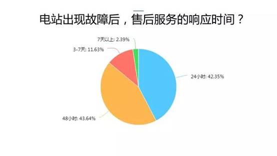 第五、用户并网后对电站故障引起的收益下降和安装隐患都存在疑问,对售后响应时间有要求。据户用光伏大会的调查数据显示:用户的光伏电站在运行过程中最易出现故障的部分是逆变器,而电站出现故障后,售后服务响应时间超过24小时的占到58.7%,户用光伏电站出现问题将直接影响用户收益。