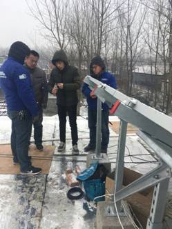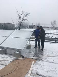 看到霍先生对爱康产品赞不绝口,郭经理的责任心更加强烈。他仔细地检测了线路,电器件,电表等器件,在凛冽的寒风中爬上近三米高的屋顶,对组件的安装规范,接头连接,布线等一一排查,并对组件进行了简单清洁。经过仔细查验,系统运行一切正常。