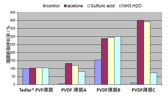 (3) 耐化学性:Tedlar® PVF耐化学性优,而PVDF 发生溶胀