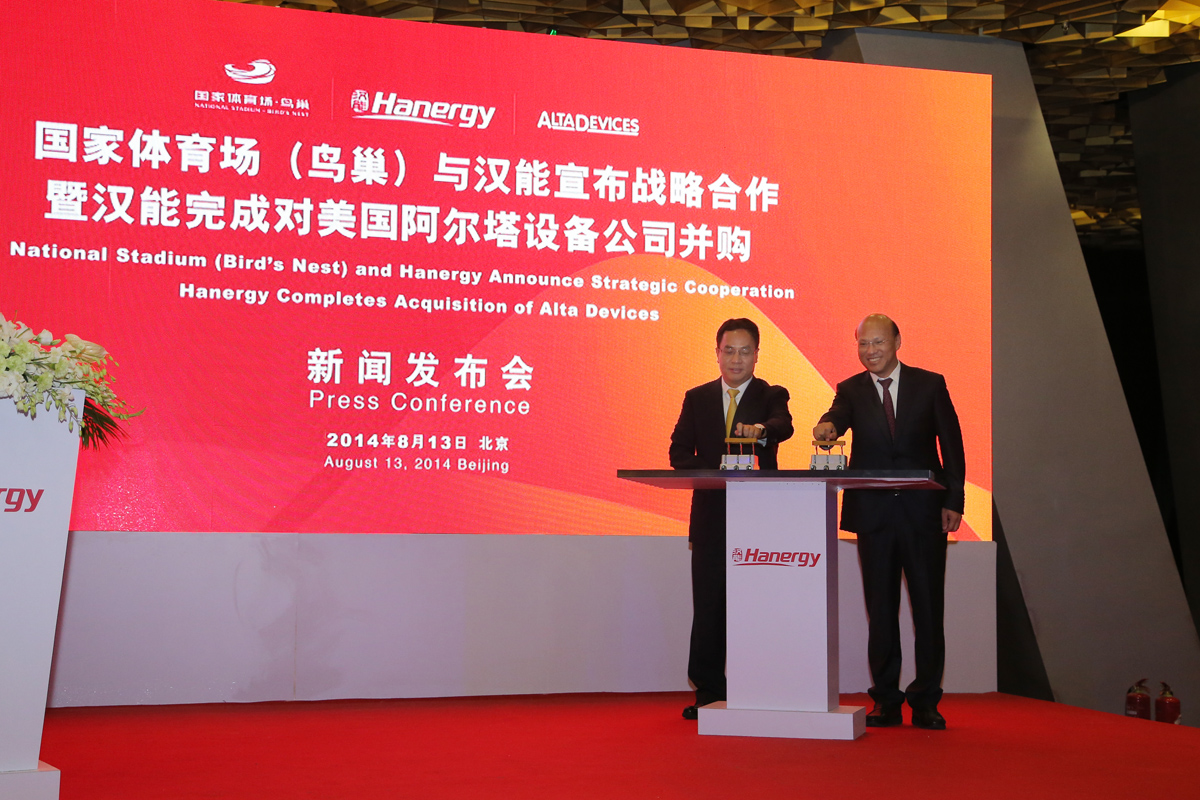 | 8月13日,国家体育场(鸟巢)与汉能在鸟巢金色大厅联合宣布,汉能正式成为国家体育场(鸟巢)战略合作伙伴、清洁能源技术唯一合作伙伴。 |