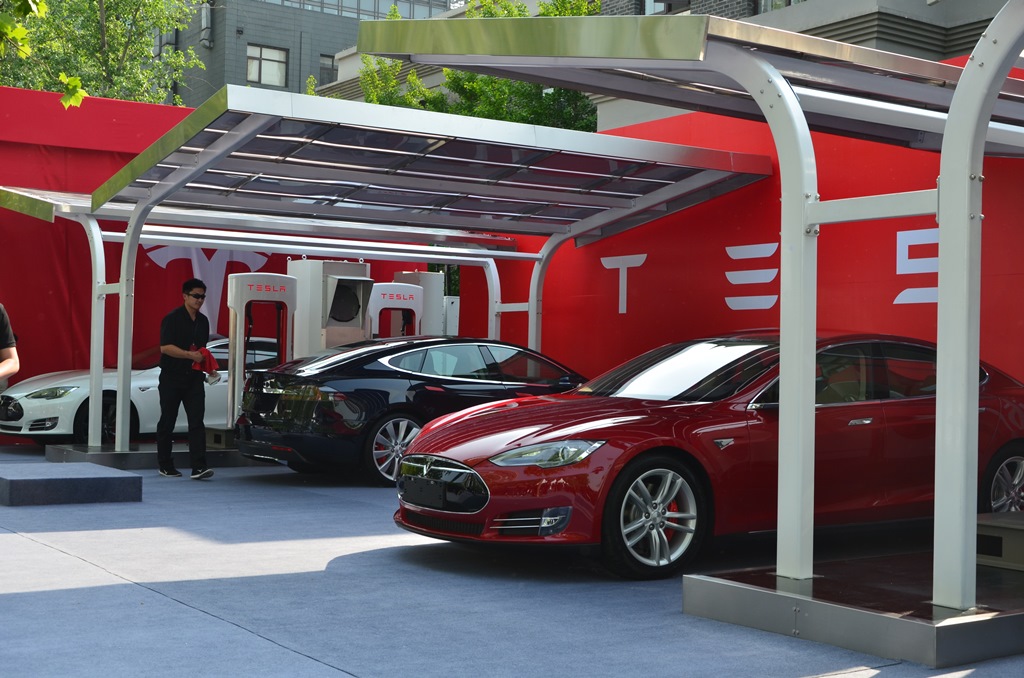 | 4月22日,在特斯拉北京首批用户交车仪式上,两座与特斯拉电动汽车同台亮相的光伏充电站系统成为了嘉宾关注的焦点。 |