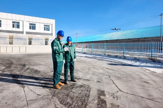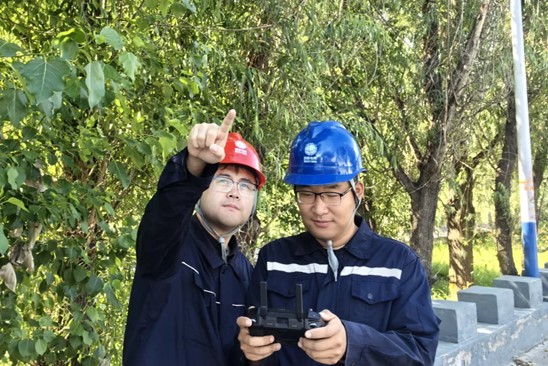 ▲国网丰宁县供电公司平安堡镇供电所员工使用无人机对简爱父爱牧场专线进行年前巡检(孙婷婷摄)