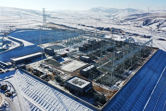 ▲500千伏千松坝变电站矗立在丰宁布满积雪的山岗上(孙婷婷摄)