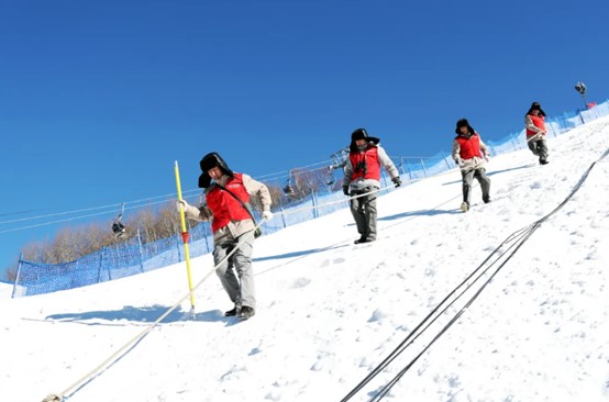 ▲国网张家口供电公司共产党员服务队在滑雪场协助用户排查消除安全用电隐患,护航滑雪季安全用电(孙孝庆摄)