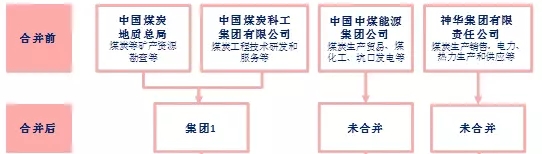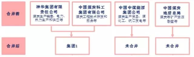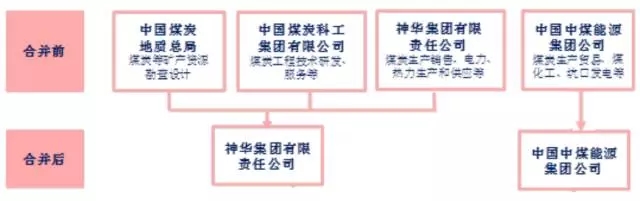 中国煤炭地质总局、中煤科工重组、神华集团重组成一家,中煤集团重点重组其他央企煤炭资产。