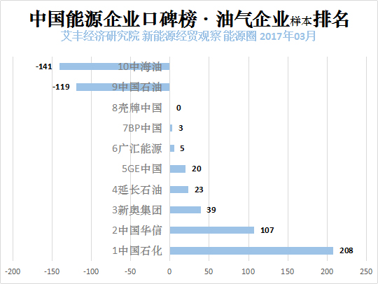 2017年,在国家规划的七大改革领域中,能源占有重要的一席。中国能源企业,也将同行业一起,面临更多的变动。而这种变动,也吸引着着民众的目光。变动,其结果如何,也体现在口碑中。