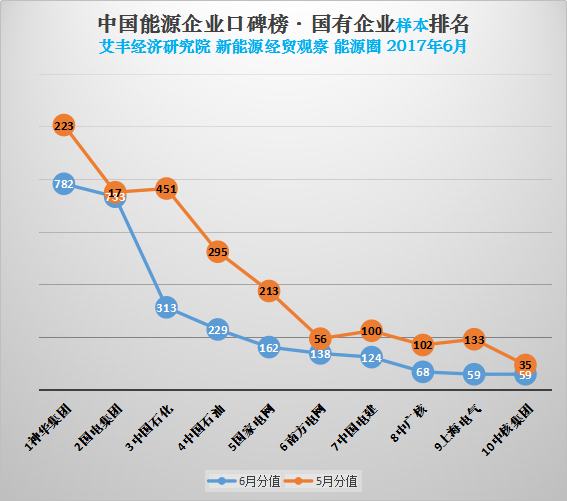 国有企业在中国能源企业口碑榜6月榜单中,经历着冰火两重天的境地。神华集团高居榜首,华能集团则拿到了倒数第一。
