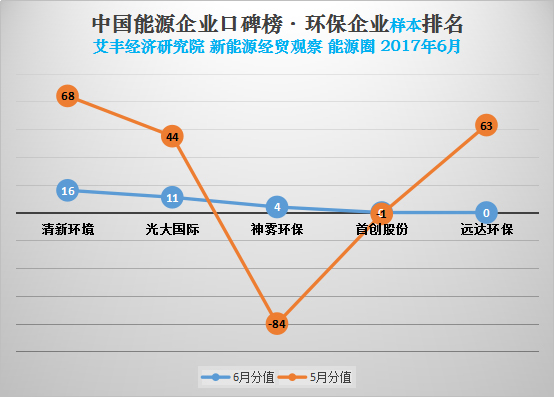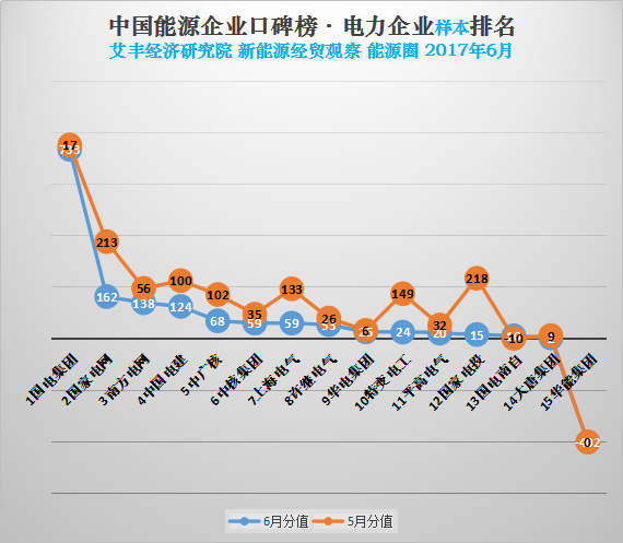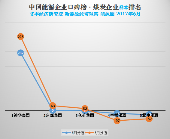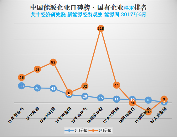 6月,口碑最高分值782(神华集团),最低分值-402(华能集团),两者相差1184,是5月的两倍多。